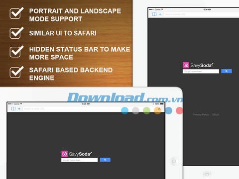 - Ứng dụng tận dụng tối đa từng pixel trên màn hình để mang đến trải nghiệm xem web toàn màn hình ấn tượng. Nhờ loại bỏ các thanh trạng thái và tự động ẩn các điều khiển khi cần thiết, diện tích hiển thị được mở rộng tới 13% so với trình duyệt Safari tiêu chuẩn.