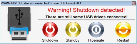 Free USB Guard có cơ chế hoạt động rất đơn giản. Phần mềm sẽ hiển thị thông báo nhắc nhở bạn rút ổ USB ra khỏi máy tính mỗi khi bạn chọn tắt máy (Shutdown) hoặc đăng xuất (Log off).