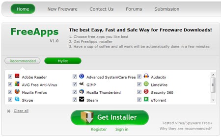 Sau khi đã lựa chọn xong, bạn chỉ cần nhấn vào nút Get Installer nằm bên dưới ô My Selected. Hệ thống sẽ tự động tải về một tập tin có tên là FreeApp.exe.