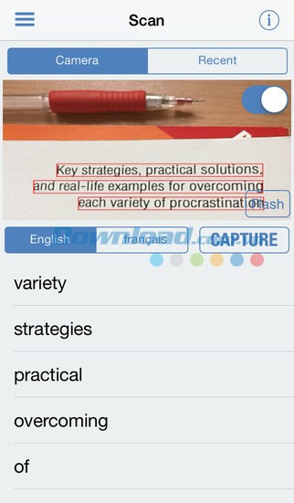 Người dùng giờ đây có thể quét và dịch chữ viết tiếng Anh và tiếng Pháp từ hình ảnh. Chỉ cần hướng camera của thiết bị vào văn bản, chụp lại, và ứng dụng sẽ nhanh chóng tìm kiếm nghĩa của từ đó trong Từ điển Pháp.
