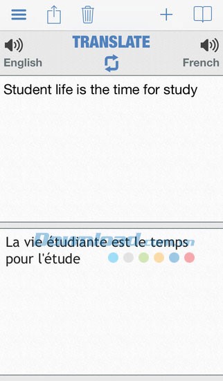 Ứng dụng hỗ trợ dịch các từ ngữ riêng lẻ, cụm từ hoặc thậm chí cả câu hoàn chỉnh giữa tiếng Anh và tiếng Pháp.