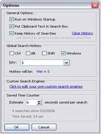 Nếu bạn muốn bảo vệ quyền riêng tư và không muốn chương trình lưu lại lịch sử tìm kiếm, hãy bỏ chọn ô Keep History of Searches trong phần Options.