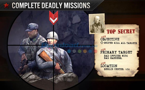 Nắm vững các mục tiêu đầy thách thức và thuần thục vũ khí cá nhân để mở đường, tiến vào các vùng quê bị quân phát xít chiếm đóng. Hãy trở thành một trong những lính đặc công ưu tú nhất, tiêu diệt các mục tiêu quân sự bằng sự phối hợp linh hoạt giữa vũ khí và chiến thuật.
