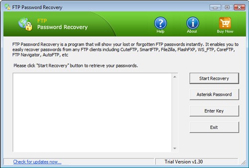 FTP Password Recovery là phần mềm chuyên dụng để khôi phục thông tin đăng nhập và mật khẩu cho tất cả các tài khoản FTP được lưu trữ bởi nhiều phần mềm FTP phổ biến.