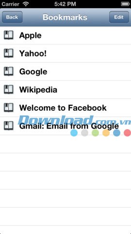 Ứng dụng cho phép người dùng đánh dấu các trang web yêu thích để truy cập nhanh chóng. Các chức năng bổ sung, xóa, sắp xếp và chỉnh sửa bookmark được thực hiện tương tự như trên Safari.