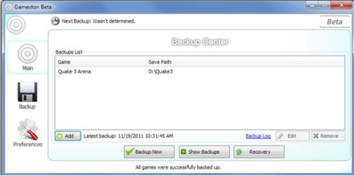Để bắt đầu quá trình sao lưu, bạn chỉ cần nhấp vào nút Add trên giao diện chính để thêm trò chơi vào danh sách sao lưu. Các trò chơi đã thêm sẽ được hiển thị trong cửa sổ Gameton Add Game Wizard.