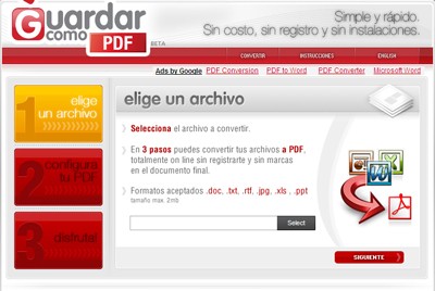- Truy cập trang web guardarcomopdf.com. Lưu ý rằng giao diện trang web mặc định là tiếng Tây Ban Nha.