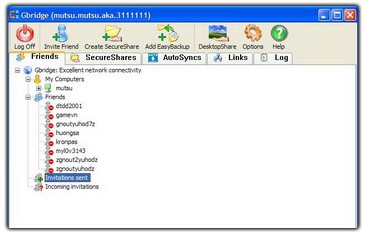 Để thiết lập kết nối với một máy tính khác, máy tính đó cũng cần phải được cài đặt Gbridge. Sau khi cả hai máy tính đều đăng nhập vào chương trình, bạn chỉ cần nhấp vào Invite Friend trên giao diện chương trình.