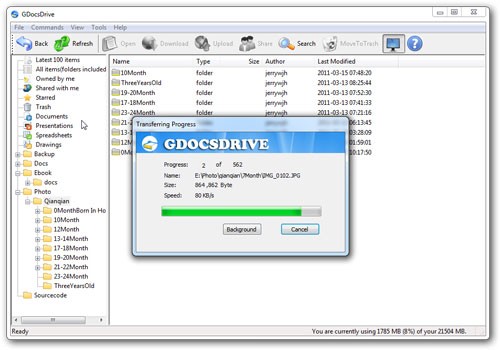 Với GDocsDrive, việc tải lên một hoặc nhiều thư mục, bao gồm cả các thư mục con, trở nên dễ dàng hơn bao giờ hết, chỉ với một thao tác kéo và thả đơn giản. Toàn bộ quá trình diễn ra một cách tự động trong nền, cho phép người dùng tiếp tục công việc khác mà không gặp bất kỳ sự gián đoạn nào.