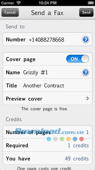 Ứng dụng còn cung cấp tùy chọn thêm một trang bìa miễn phí vào bản fax của bạn.