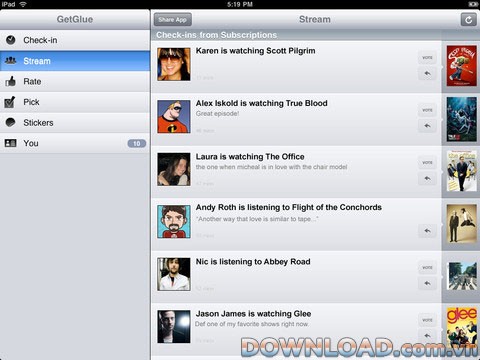 Xem thêm: GetGlue for iPad 3.0 - Social Networking App .