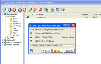 GetRight là một tiện ích mạnh mẽ được thiết kế để tải các tập tin từ internet. Tương tự như Go!Zilla, GetRight có khả năng tích hợp trực tiếp vào trình duyệt web của bạn – tương thích với mọi phiên bản của Netscape Navigator và Microsoft Internet Explorer 4.0 trở lên.