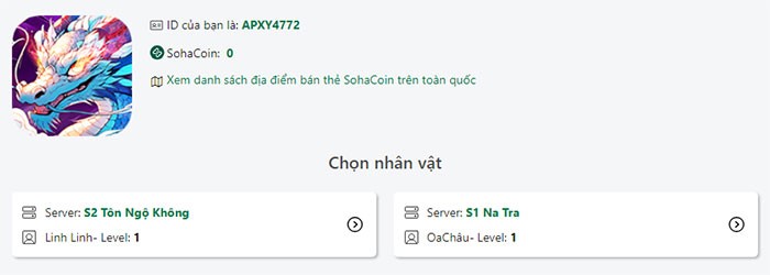 Bước 2: Tiến hành chọn nhân vật và server mà bạn đang tham gia trò chơi.