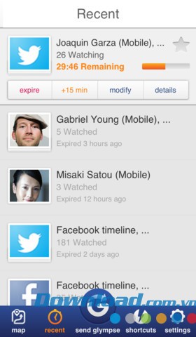 Glympse mang đến cho người dùng một không gian riêng tư và tùy chọn xem thông tin qua trình duyệt web di động, ngay cả khi họ chưa cài đặt ứng dụng. Hơn nữa, bạn có thể cài đặt thời gian hết hạn cho Glympse để tiết kiệm pin.
