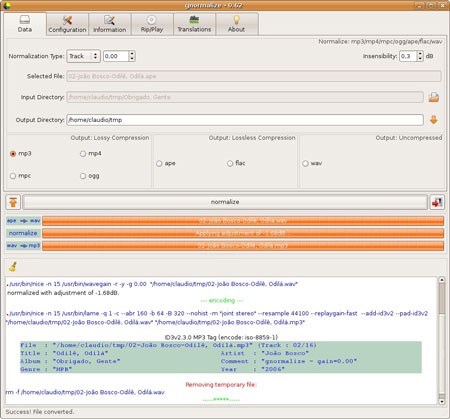 Không chỉ đơn thuần là một trình chuyển đổi định dạng âm thanh (hỗ trợ các định dạng phổ biến như mp3, mp4, mpc, wav, ogg, ape và flac), Gnormalize còn cho phép người dùng điều chỉnh mức âm lượng của các file âm thanh.