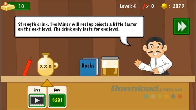 Ngoài ra, game còn có cửa hàng, nơi bạn có thể sử dụng tiền để mua các vật phẩm hỗ trợ. Ví dụ như thuốc nổ để phá đá, nước tăng lực để kéo vàng nhanh hơn, cẩm nang về đá để tăng giá trị của đá và nhiều vật phẩm hữu ích khác. Bạn đã sẵn sàng bắt đầu hành trình đào vàng của mình chưa?