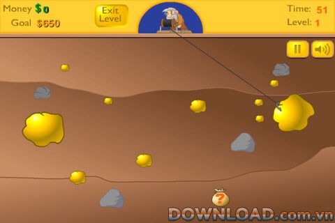 Game đưa bạn vào những màn đào vàng đầy thử thách, vừa đơn giản lại vừa đòi hỏi sự khéo léo. Mục tiêu của bạn là giúp ông lão kéo lên những thỏi vàng lớn nhỏ, khám phá những bí mật ẩn chứa trong các túi tiền, thu thập kim cương và những viên ngọc lấp lánh với đủ màu sắc.