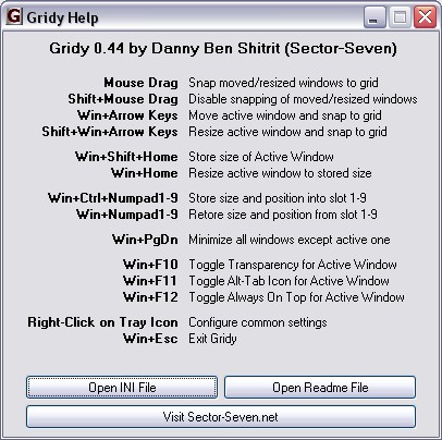 Để truy cập các tùy chọn cấu hình, bạn chỉ cần nhấp chuột phải vào biểu tượng Gridy trên khay hệ thống. Hoặc, bạn có thể kích đúp vào biểu tượng này để mở màn hình trợ giúp, liệt kê đầy đủ các thao tác có sẵn.