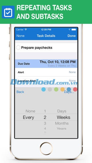 - Lặp lại nhiệm vụ: Dễ dàng thiết lập các nhiệm vụ định kỳ, chẳng hạn như "thanh toán hóa đơn thẻ tín dụng" hàng tháng. Sau khi hoàn thành, ngày tháng của nhiệm vụ sẽ tự động được cập nhật cho chu kỳ tiếp theo.