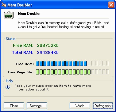 Để giải phóng bộ nhớ RAM đang bị các chương trình không sử dụng chiếm dụng, bạn hãy chọn mục Wizard, sau đó chọn Mem Double và cuối cùng là Wash.