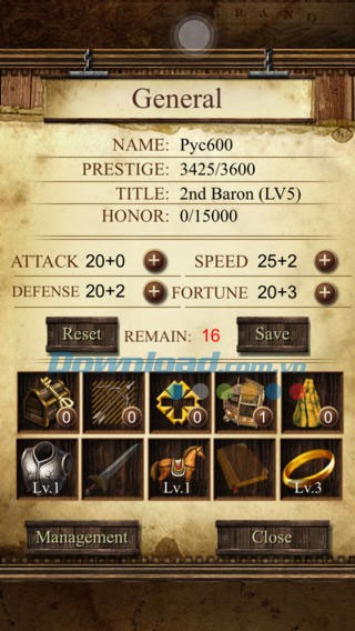 Haypi Kingdom for iOS mang đến trải nghiệm chiến thuật sâu sắc với vô vàn trang bị, vật phẩm đa dạng, tương ứng với từng cấp độ nhân vật. Đồng thời, nhờ tính chất của một game MMO, bạn sẽ có cơ hội tranh tài với hàng ngàn lãnh chúa khác trên toàn thế giới để khẳng định vị thế thống trị.