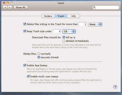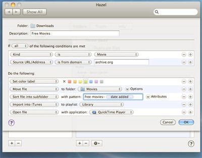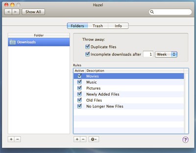 Bên cạnh khả năng phân loại cơ bản, Hazel còn cho phép người dùng tùy chỉnh nhãn màu, thêm các dòng bình luận Spotlight, quản lý file nén và hỗ trợ nhập file trực tiếp từ các ứng dụng phổ biến như iPhoto và iTunes.