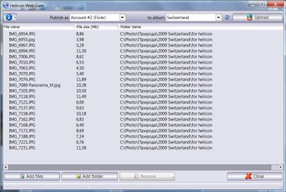 Helicon Web Gate hỗ trợ người dùng tải ảnh lên các nền tảng trực tuyến phổ biến như Picasa, Facebook và Flickr một cách dễ dàng.