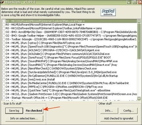 Tốt nhất là bạn nên lưu lại các bản log ở thư mục HijackThis và tìm kiếm giải pháp trên Internet.