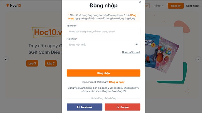 Hoc10.vn hỗ trợ nhiều phương thức đăng nhập khác nhau, mang đến sự tiện lợi tối đa cho người dùng: