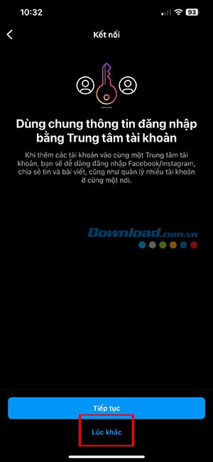 Nếu bạn không muốn liên kết với Trang Facebook, hãy chọn Lúc khác để bỏ qua bước này.