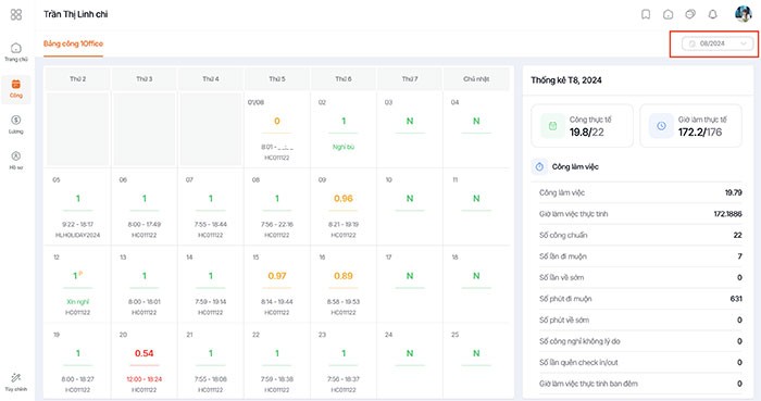1Office cung cấp cho người dùng khả năng theo dõi lịch sử chấm công và mức lương hàng tháng thông qua Trang cá nhân của họ.