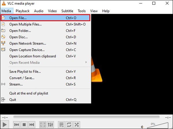 Sau khi chương trình đã mở, chọn Media từ thanh menu và sau đó chọn Open file. Hành động này sẽ mở ra cửa sổ File Explorer, cho phép bạn chọn thư mục chứa video mà bạn muốn sử dụng làm hình nền.
