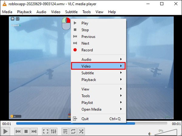 Tiếp theo, nhấp chuột phải vào cửa sổ đang phát video và chọn Video.