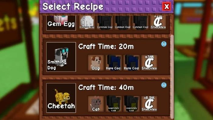 Một lựa chọn khác là sử dụng Smithing Dog. Thú cưng này có thể được tạo ra tại Pet Crafting Station, nằm trong khu vực sự kiện. Để chế tạo, bạn cần 1 Dog, 2 Rare Coal và 3 triệu Sheckles.