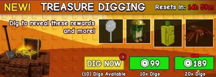 Phương pháp thứ ba là hoàn toàn miễn phí, nhưng phụ thuộc vào may mắn. Tương tự như cơ chế Gravedigging trong bản cập nhật Halloween trước, sự kiện này giới thiệu tính năng đào kho báu. Người chơi có thể truy cập khu vực này bằng cách chọn nút Shop ở phía bên trái màn hình.