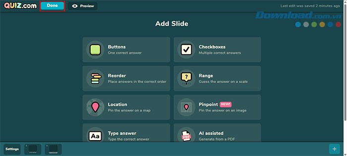 Bước 7: Khi đã hoàn tất toàn bộ bài kiểm tra, hãy nhấp vào Done để lưu lại.