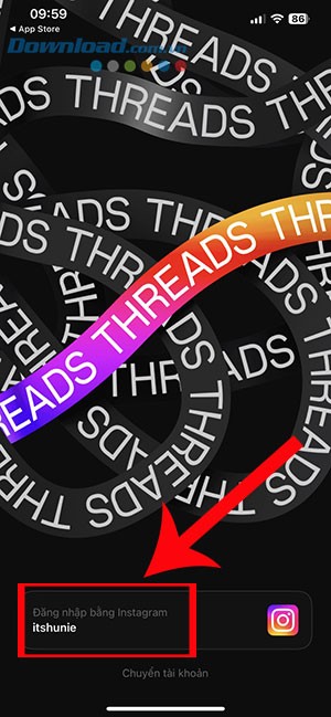 Bước 1: Sau khi hoàn tất việc tải xuống, hãy khởi động ứng dụng Threads và chọn nút Đăng nhập bằng Instagram, được đặt ở phía dưới màn hình.
