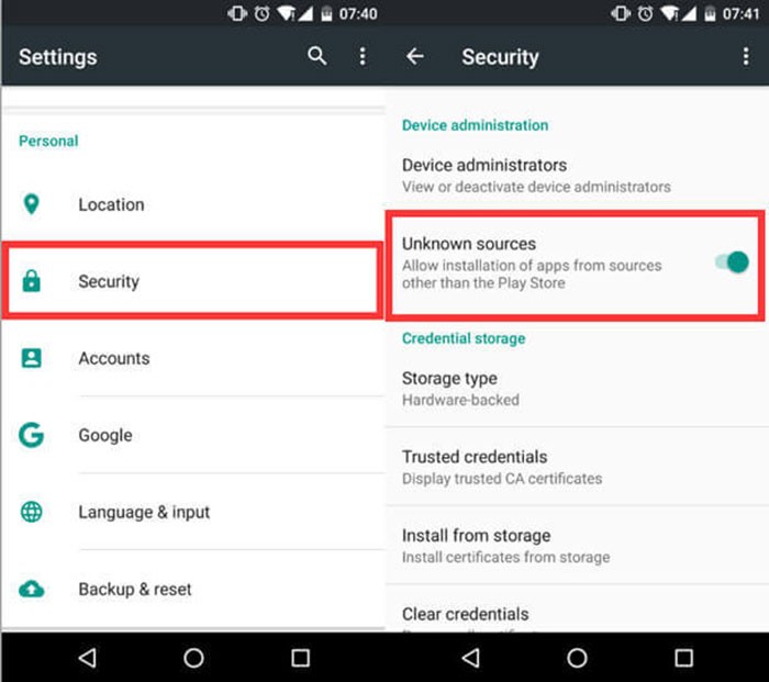 Bước 3: Tìm kiếm và kích hoạt tùy chọn Nguồn không xác định bằng cách bật công tắc tương ứng, nhằm cấp quyền cài đặt cho HappyMod.