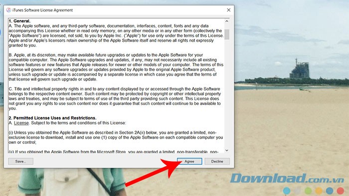 Bước 4: Trong cửa sổ thỏa thuận cấp phép sử dụng phần mềm iTunes, hãy chọn Agree để đồng ý với các điều khoản.