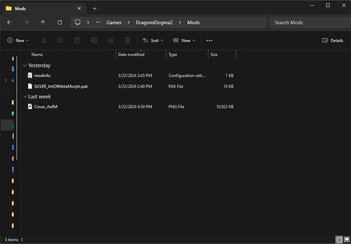 - Sau khi hoàn tất việc tải xuống, bước tiếp theo là giải nén file mod và sao chép toàn bộ các tập tin bên trong. Sau đó, di chuyển đến thư mục "mods" nằm trong thư mục cài đặt Dragon's Dogma 2 Mod Manager và dán các tập tin đã sao chép vào đó.