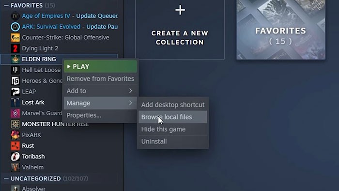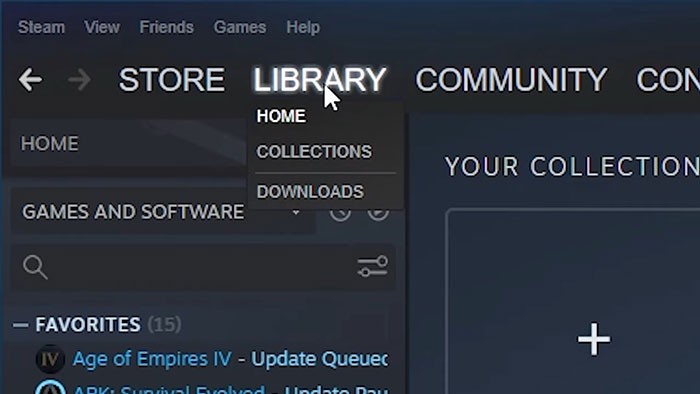 Bước 9: Để tìm thư mục cài đặt trò chơi Elden Ring, hãy mở Steam, chuyển đến tab Library và chọn Collection.