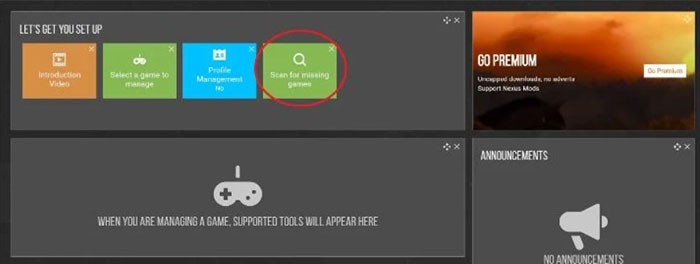 Bước đầu tiên là tải xuống công cụ Vortex. Sau khi hoàn tất việc tải, hãy khởi chạy file để quá trình cài đặt diễn ra tự động. Khi phần mềm khởi động, lựa chọn Scan for missing games để Vortex quét và tìm kiếm các trò chơi được hỗ trợ trên máy tính của bạn.