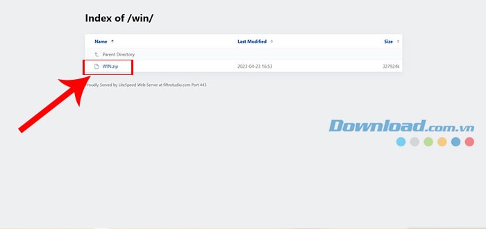 Bước 2: Sau khi chuyển hướng đến trang Index of /win/, hãy chọn file WIN.zip để tiến hành tải về. Sau khi quá trình tải xuống hoàn tất, nhấp đúp chuột vào file để giải nén.