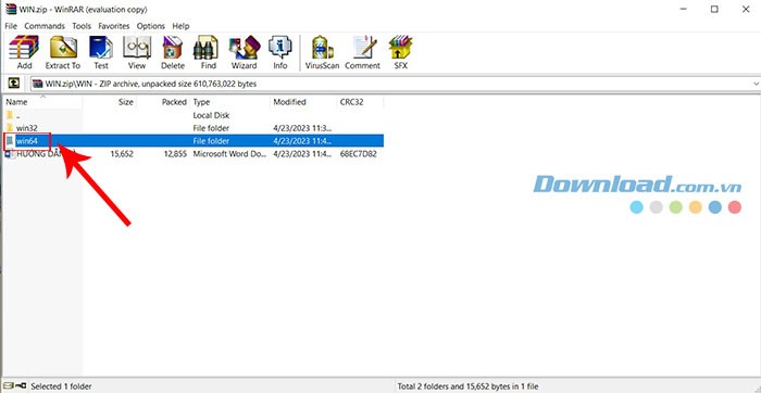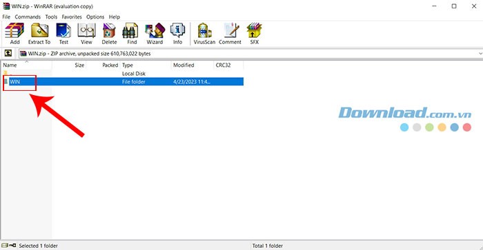 Bước 3: Trong giao diện WinRAR, bạn chỉ cần click vào mục WIN.
