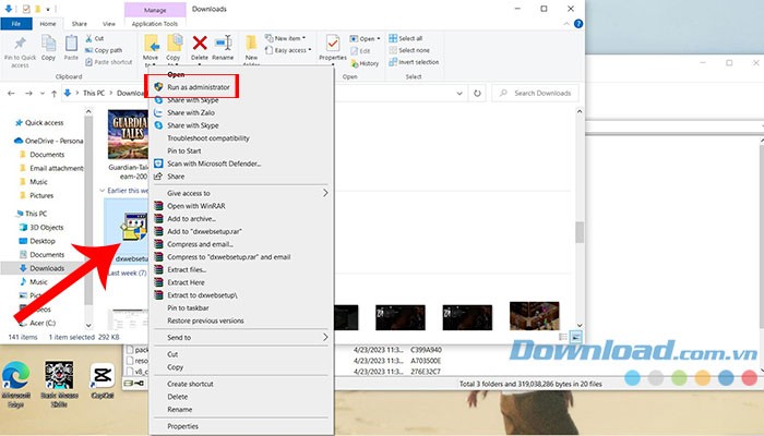 Bước 6: Mở thư mục chứa file cài đặt dxweb, click chuột phải vào tệp dxwebsetup và chọn Run as administrator để cấp quyền quản trị.