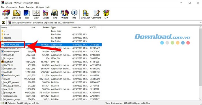 Bước 9: Quay lại WinRAR, trong thư mục phiên bản win32 hoặc win 64 mà bạn đã chọn, nhấp đúp chuột vào CHƠI NGAY.exe để khởi động trò chơi.