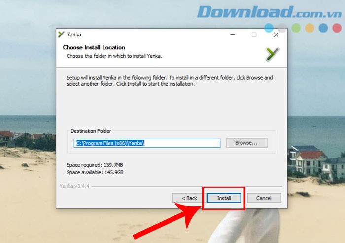 Bước 3: Tiếp theo, lựa chọn vị trí thư mục mà bạn muốn lưu trữ các file cài đặt của chương trình và nhấn Install để bắt đầu quá trình cài đặt.