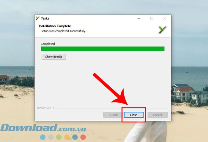 Bước 4: Khi cửa sổ thông báo quá trình cài đặt đã hoàn tất hiện ra, hãy nhấn Close để đóng cửa sổ này.