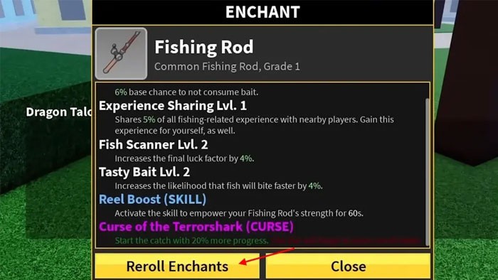- Trong quá trình enchant, cần câu có khả năng nhận được các buff tăng cường hoặc thay thế kỹ năng Reel Boost hiện tại bằng một kỹ năng mới.