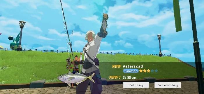 Để tiếp tục hướng dẫn, bạn sẽ cần câu được một con Asterscad tại khu vực Yacht Harbor. Khi đến gần mặt nước, hướng dẫn câu cá sẽ tự động hiện ra, hướng dẫn bạn cách ném cần, chờ đợi cá cắn mồi và kéo dây.
